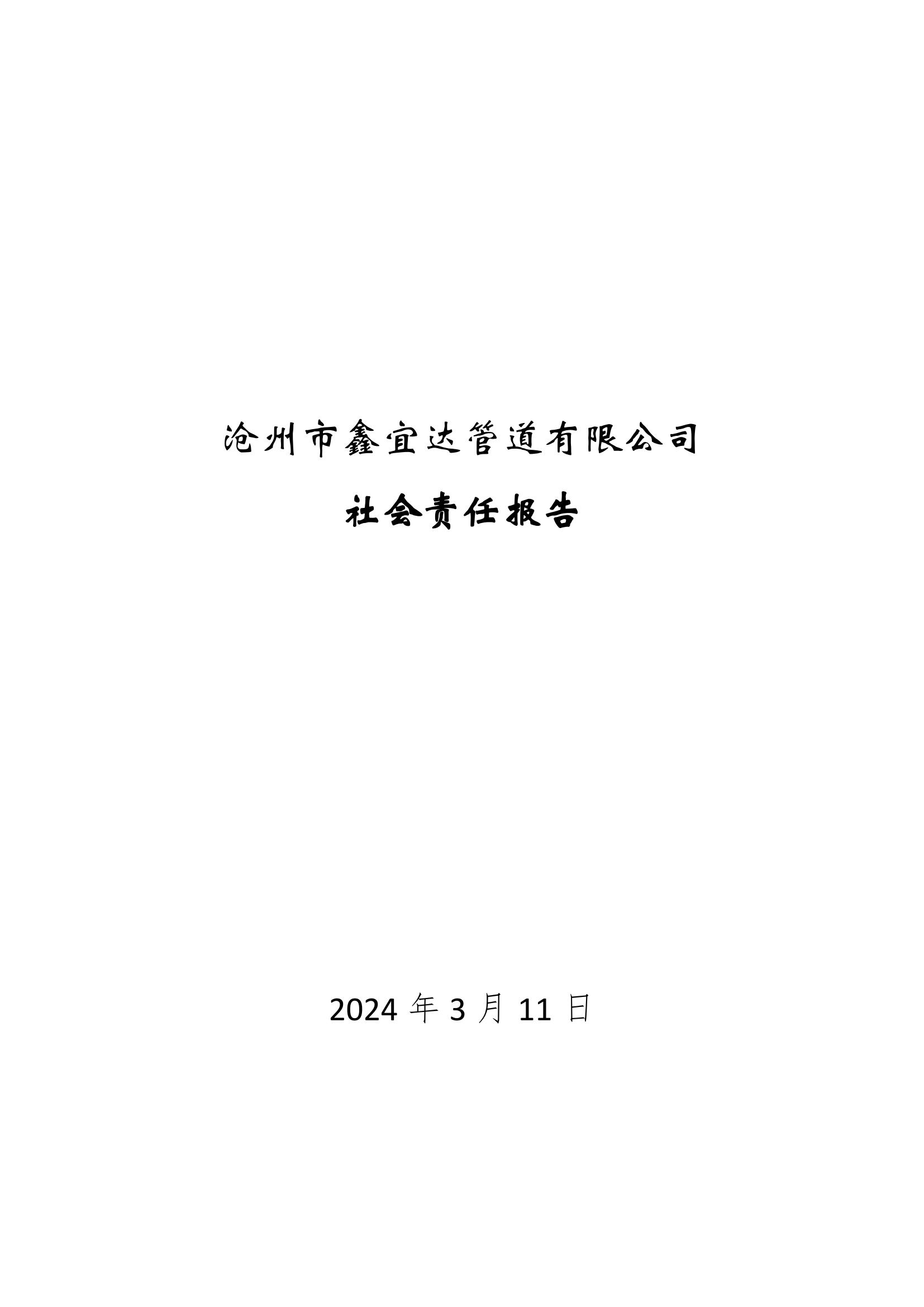 滄州市鑫宜達(dá)管道有限公司社會(huì)責(zé)任報(bào)告